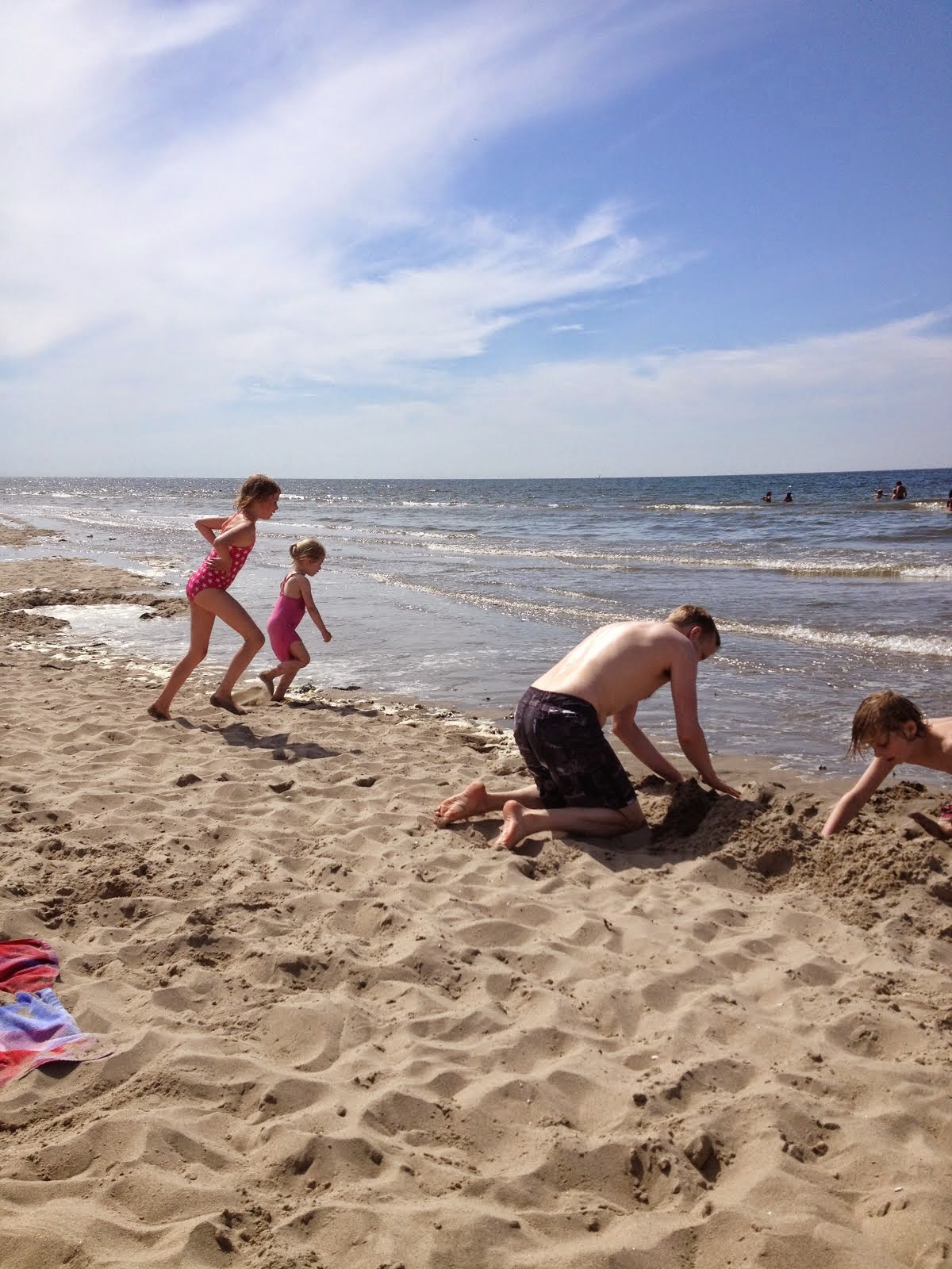 We hadden met een groepje thuisonderwijzers afgesproken op het strand. Het weer viel niet echt mee. Toch hebben ze nog even lekker kunnen spelen. Voordat we echt van het strand af zouden regenen zijn we met z'n allen naar N.'s huis gegaan en hebben de kinderen daar lekker verder kunnen spelen terwijl de ouders gezellig konden kletsen.